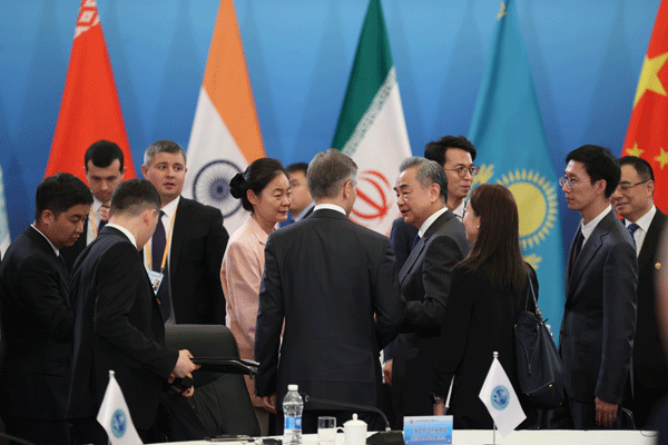 王毅表示,当前,百年变局加速演进,动荡变革交织共振。世界多极化、经济全球化深入发展,全球南方卓然壮大。同时,霸权强权倒行逆施,保护主义逆流涌动,地区冲突此起彼伏。新形势下,成员国要本着对历史、对未来负责任的态度,就加强上合组织建设形成进一步共识。